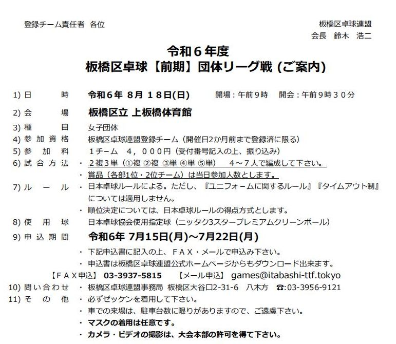板橋区卓球連盟