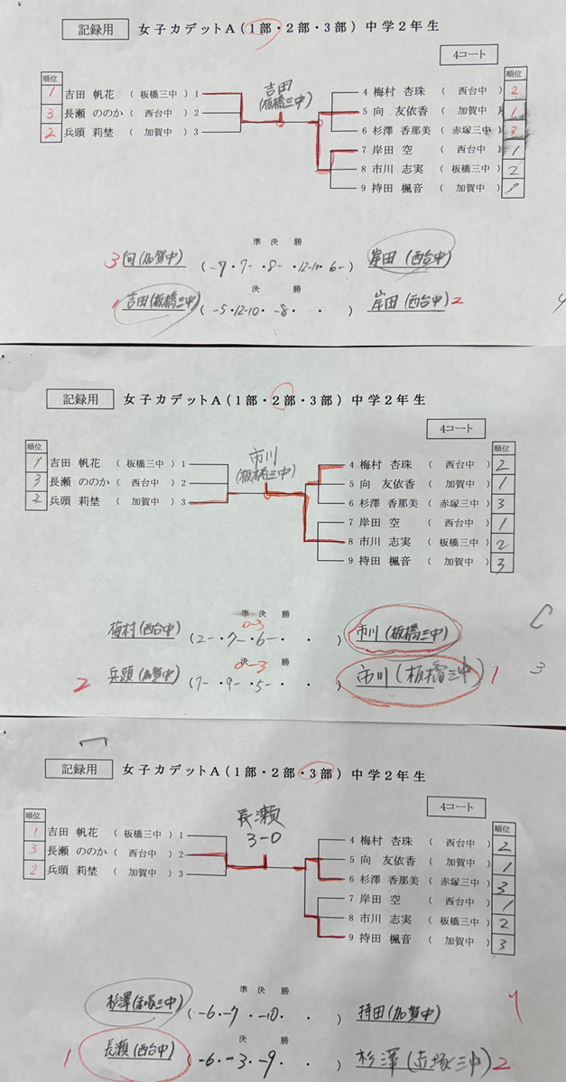 [結果]第77回区民大会卓球大会(小中学生個人戦:女子カデットA結果)